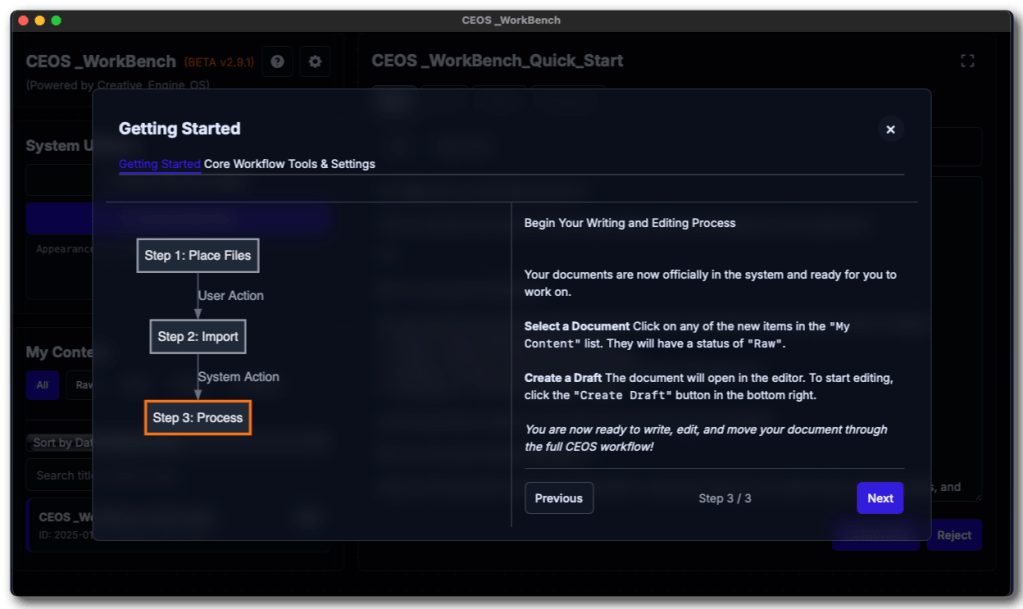 Introducing CEOS _Workbench, the all-in-one desktop application designed to streamline your entire document-centric workflow. Built on the principle of “Keep It Simple, Stupid” (KISS), CEOS Workbench provides a powerful, structured environment that lets you focus on what matters most: creating great content.